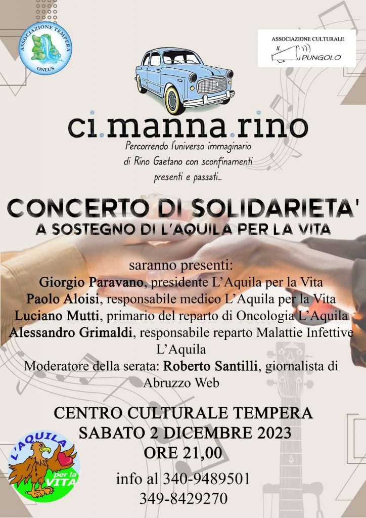 Concerto di solidarietà per i malati oncologici in compagnia della band Ci manna Rino che interpreterà i brani più celebri di Rino Gaetano.