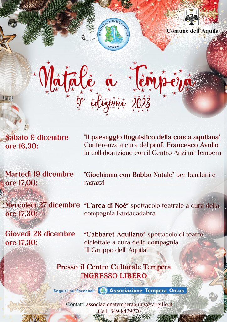 Vi presentiamo il calendario degli Eventi Natalizi al Centro Culturale Tempera augurando a tutti voi Buone Feste!