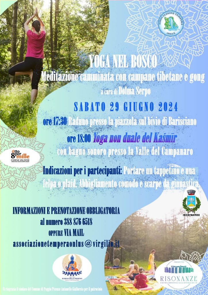 SABATO 29 GIUGNO vi aspettiamo al Secondo Incontro del ciclo “MEDITAZIONE CAMMINATA NEL BOSCO”, nell’ambito del progetto RISONANZE, promosso dall’Associazione Tempera onlus e dalla Tavola Valdese, in collaborazione con il Centro Buddha della Medicina • yoga e musicoterapia .